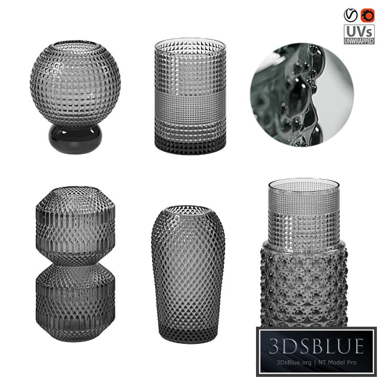 Set of 5 "Specktrum" relief vases from luxurious vintage glass.