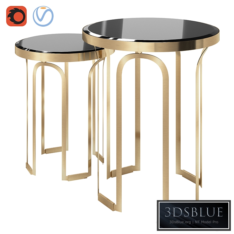 Freestanding tower table, available in two sizes: large and small, made in black lacquered glass and polished paws.
