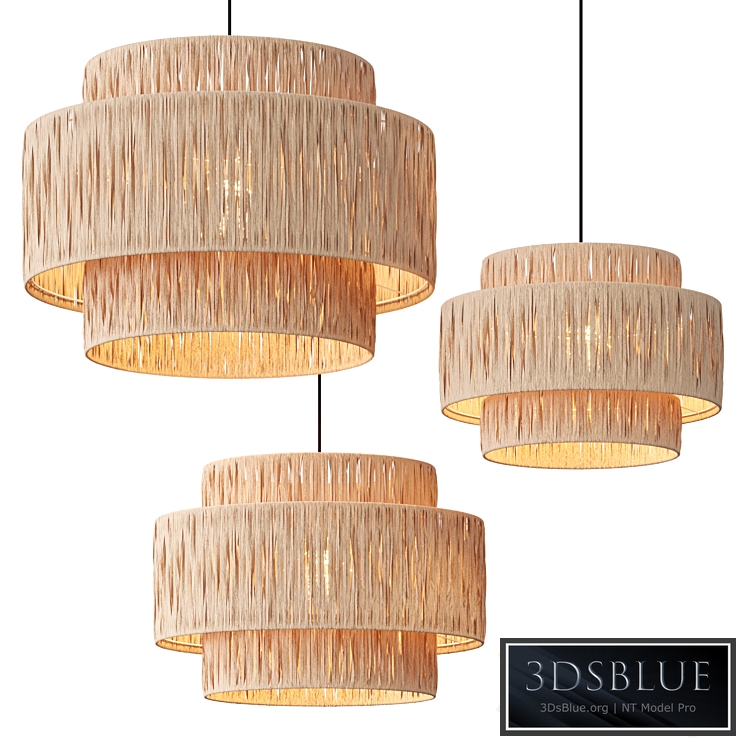 Hanging chandelier in oriental style with a three-tier lampshade made of rattan palm HISKIAS Lampatron