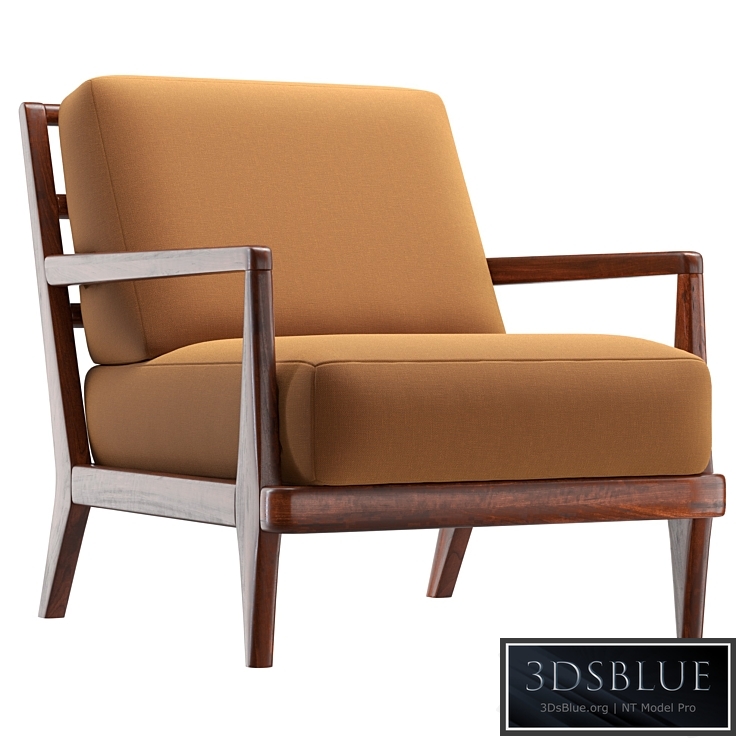 The Headlands Lounge Chair features a sculptural solid wood frame and upholstered cushions.