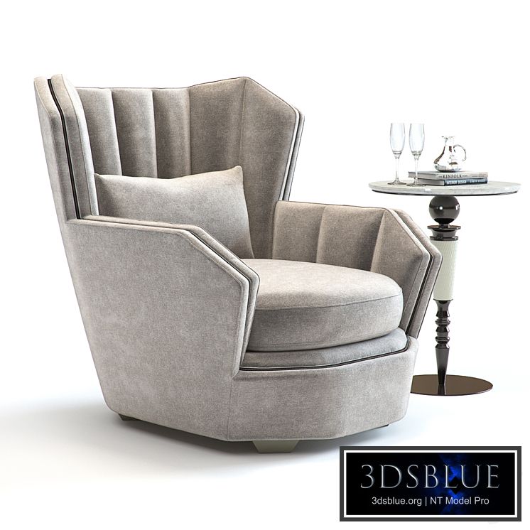 High-detailed 3D set of The Sofa & Chair Company Hemingway armchair and maxims table.