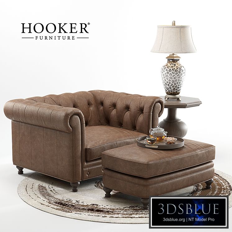 High-detailed 3D set of Hookers Alexa Armchair, Ottoman, Side table and Lamp