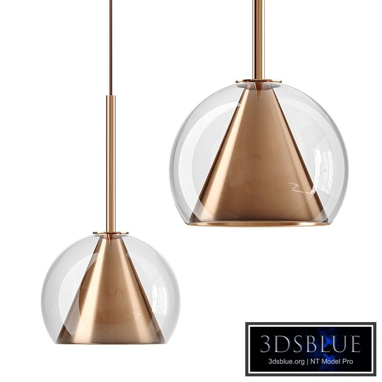 KONO LIGHT by Dechem studio. This collection of suspended light fixtures combines the elementary geometric shapes of a hand-blown glass ball and a brass cone inside, creating an almost metaphysical composition. The glass shades are available in crystal clear, alabaster white, smoke gray and neutral nude. The lamp is suspended on a brushed brass fixture with a textile covered cable.