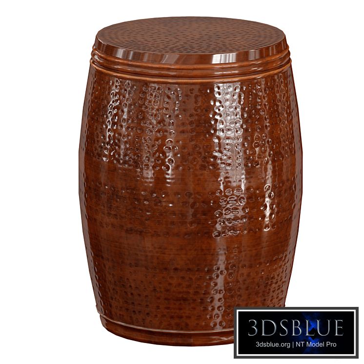Metal accent table in the form of a barrel in brown bronze finish. Made of aluminum, made in India.