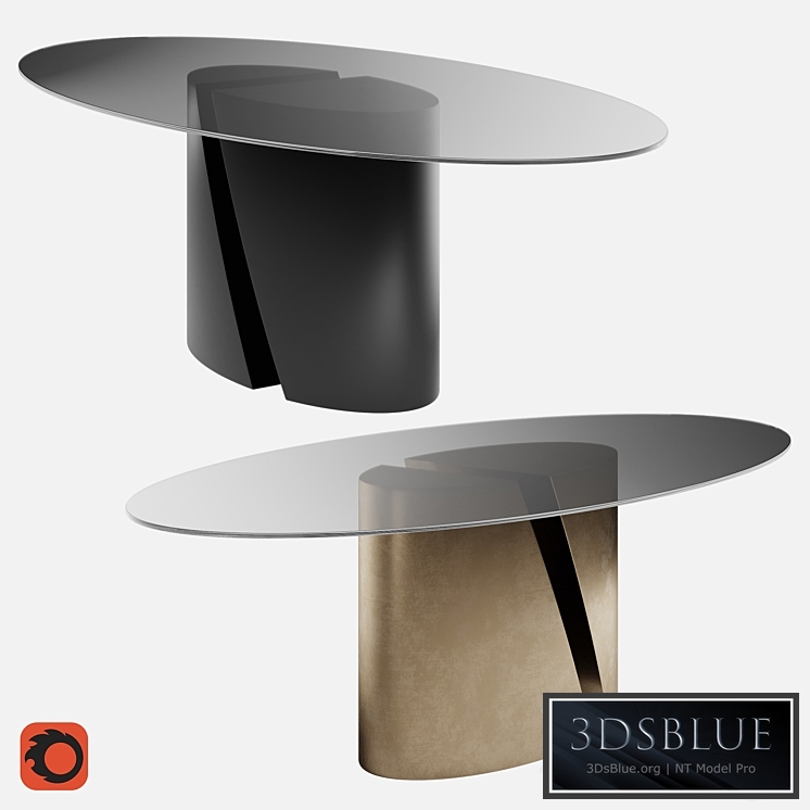 The Wadi table communicates a fascinating formal rigor and a contemporary architectural impact. Available with oval top in transparent glass or gray smoked glass, and base in titanium steel, steel pewter or black lacquered wood.