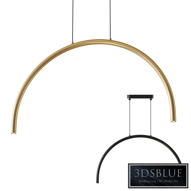 Pendant LED luminaire with two spot sources on a C-shaped body in real and blackened brass Lampatron LINNART