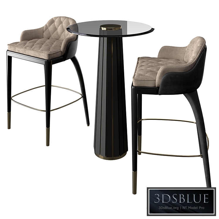 The Darian bar table gets its inspiration from our prodigious Darian sideboard. This stunning handcraft table is made of round smoked glass placed on top of a wooden structure in black lacquer touched by gold plated brass bars.