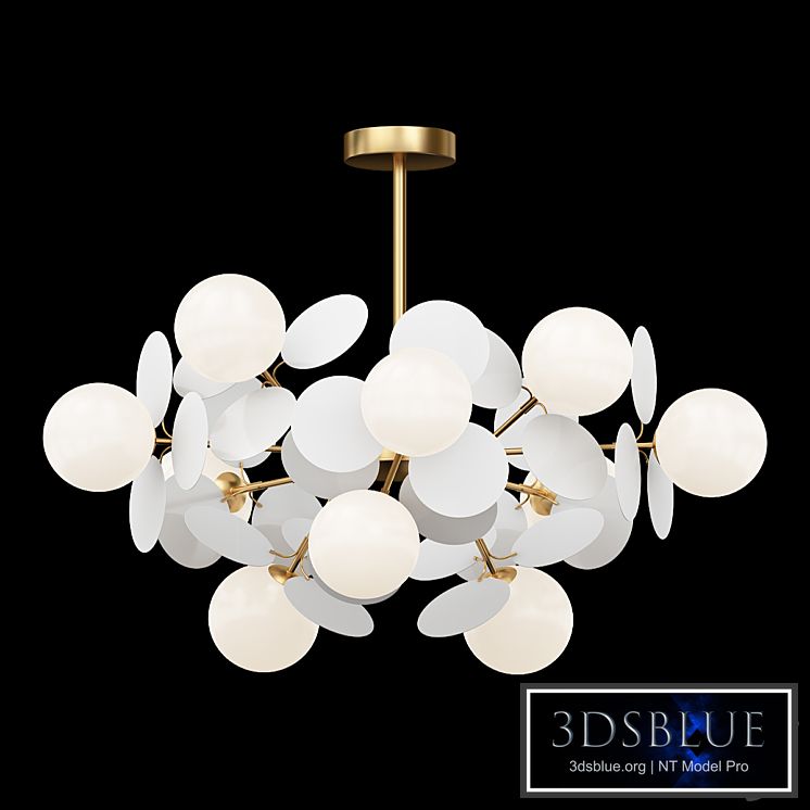 Chandelier in a modern style with ball-shaped matt shades and decor in the form of discs