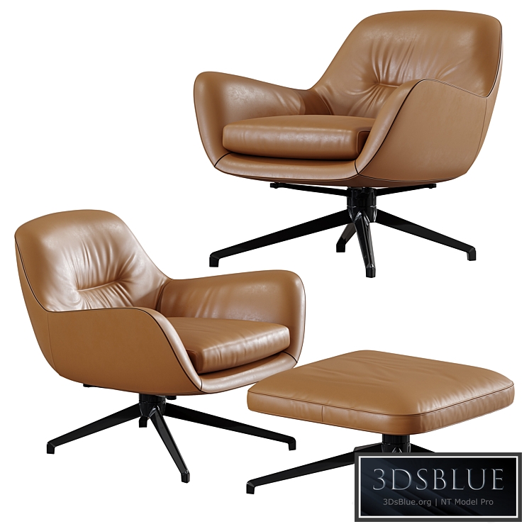 Highly detailed 3D model of the Chair and pouf Minotti Jensen