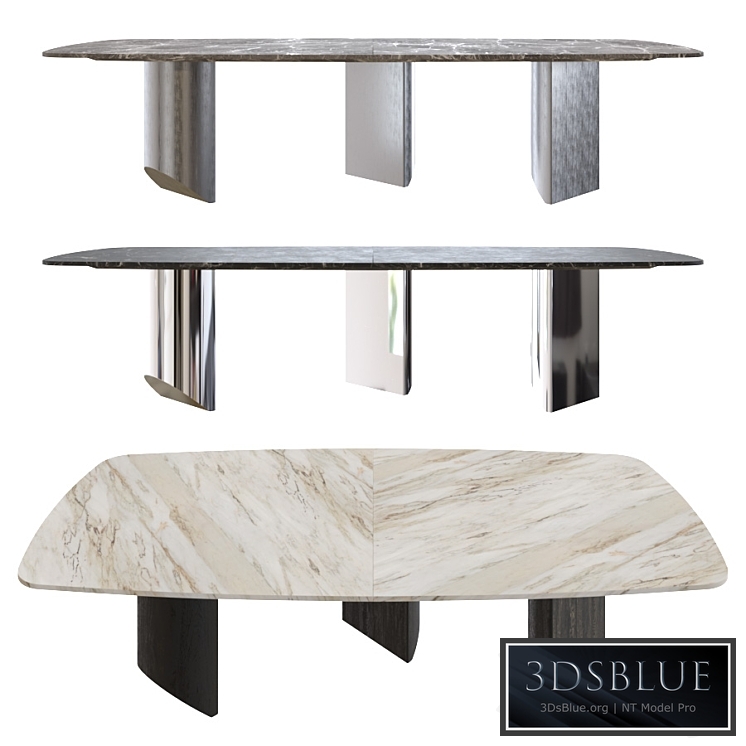 Dining table Minotti Wedge in two versions.