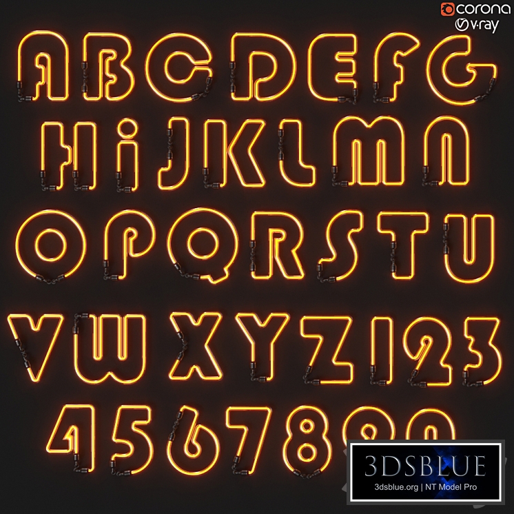 Light modules. neon light lamp 003 - LED elements, letters, neon sign, neon signs for a bar, an inscription, a club, an interior for a loft ... - File Formats: 3dsMax 2015 (Vray, Corona), FBX