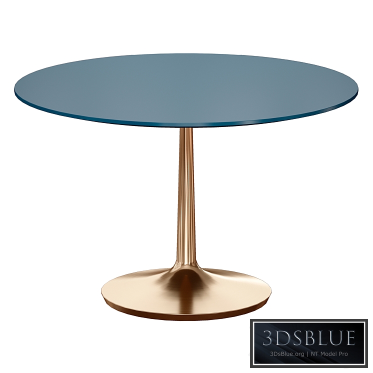 Round dining table Nero 48 "Blue Lacquer Dining Table with Brass Base (Crate and Barrel). Blue lacquered faux wood top with brass metal leg.