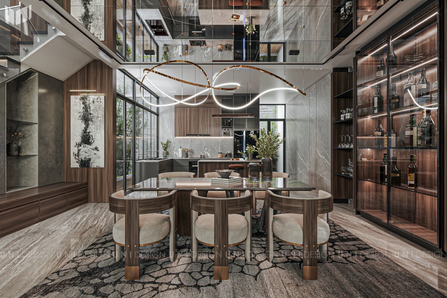 Trung Nghia - Free 3D Living Room- Kitchen Interior Model Download