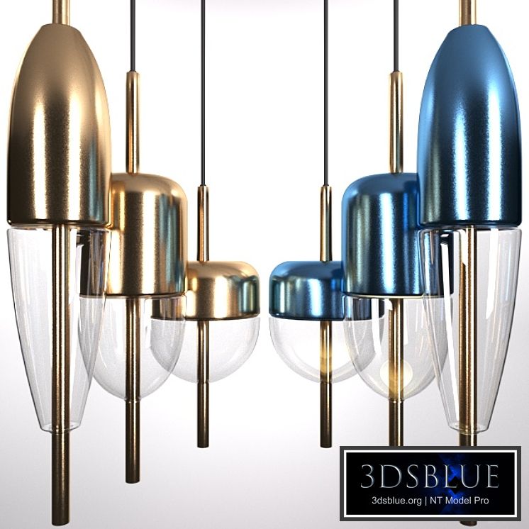 The archive contains 6 models (3 gold chandeliers: Pamfa, Dune, Larus and 3 blue chandeliers: Pamfa, Dune, Larus