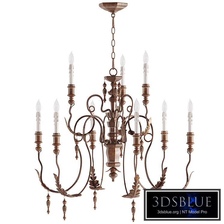 Quorum 6006-9-39 Salento 9-lamp, vintage, copper, ceiling chandelier. Brand: Quorum Collection: Salento Sizes. Width: 810 mm. Height: 860 mm. Http://www.quorumlightinglights.com/product/quorum-salento-chandeliers-6006-9-39.html Contains the 3ds max 2011 file Obj is loaded without any textures.
