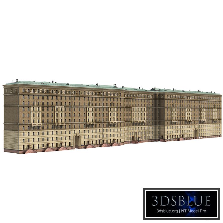 The building is large (210x17x40 meters), Polys: 580327 Verts: 608625