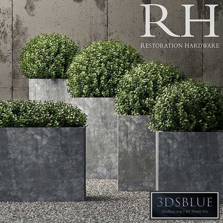 High quality 3d models restoration hardware planters Formats included: * .max with materials and textures * .fbx with materials and textures poly: 1799470 verts: 1783075