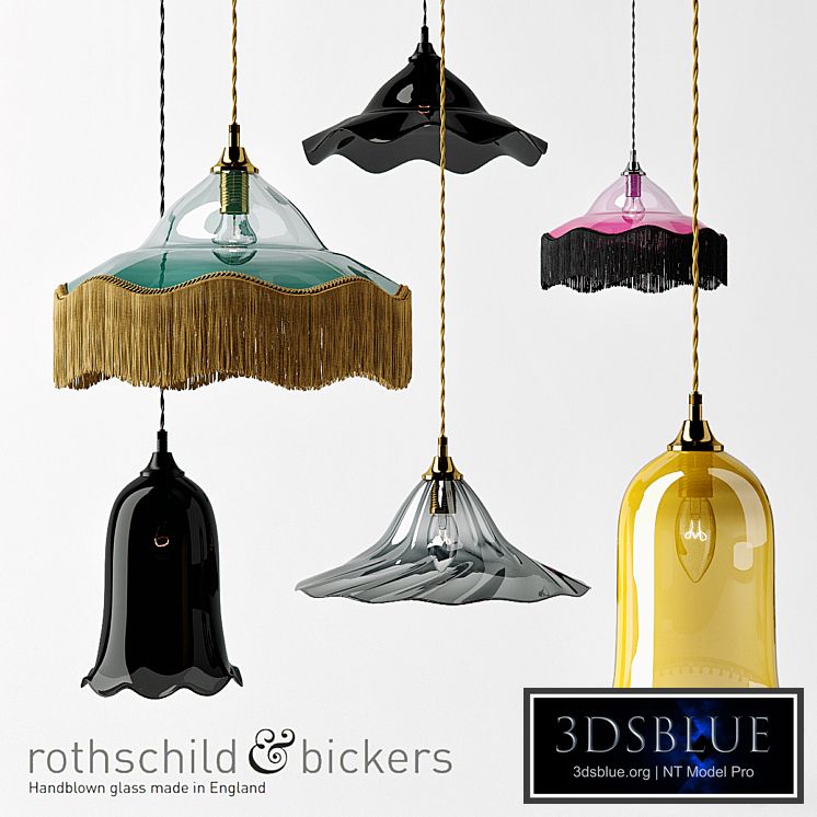 1) Tassel Light: Height: 250mm - Diameter: 170mm. 2) Black Nouveau: Bell - Height: 270mm - Diameter: 180mm. Open - Height: 185mm - Diameter: 320mm. 3) Open Optic: Height: 140mm - Diameter: 320mm. 4) Vintage Light: Height: 180mm - Diameter: 350mm. Each pendant is handmade from start to finish, using traditional glass-working techniques and reinvigorating antique manufacturing processes. Expert craftsmanship is combined with cutting-edge design to create Rothschild & Bickers' sophisticated and distinctive signature lighting range. Rothschild & Bickers http://www.rothschildbickers.com/