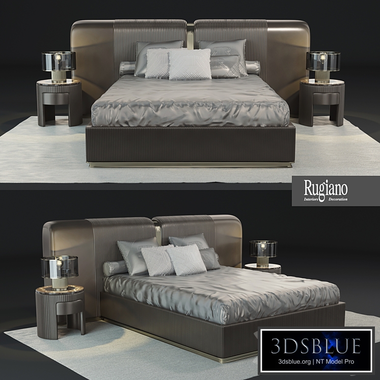 Vogue luxury Italian baguetta bed with night table upholstered in leather. Dimension: 262cm W x 224cm DX 108cm H