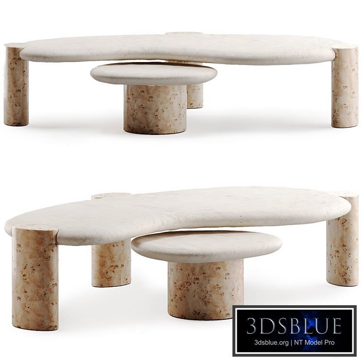 Sassolino Concrete and Burl Wood Coffee Side Table by Athena Calderone