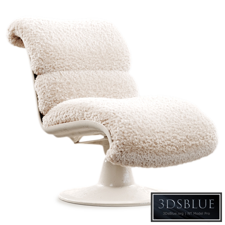 Fiberglass Swivel Armchair newly upholstered in light beige curly shearling.
