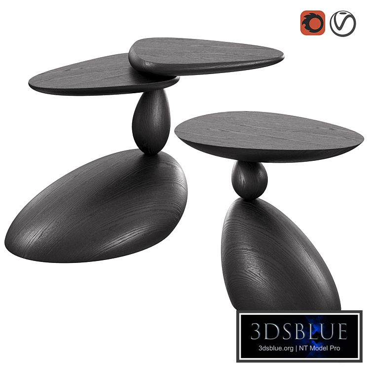 Stones and Twins coffee tables from WOODZENART from the Stone Story collection, made of solid oak. The tabletop rotates around its axis. Can also be used as bedside tables.