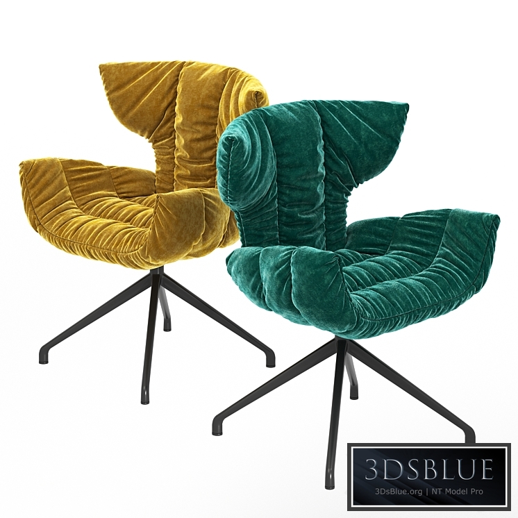 The Cassia armchair is reminiscent of a flower bowl with its curved back and seat. All elements of the chair adhere to the body and seem to hug you. Linear stitching emphasizes the symmetry of the design. The soft fabric upholstery is decorated with pleats for added comfort. Swivel base with matt black powder lacquer. The molded wood frame is padded with polyurethane foam and covered with fleece. Upholstery - fabric.