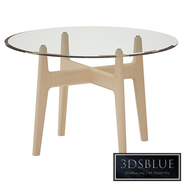 Tate 48 "Round Dining Table with Glass Top and Sand Base (Crate and Barrel). Tempered glass top with warm, light hardwood base.