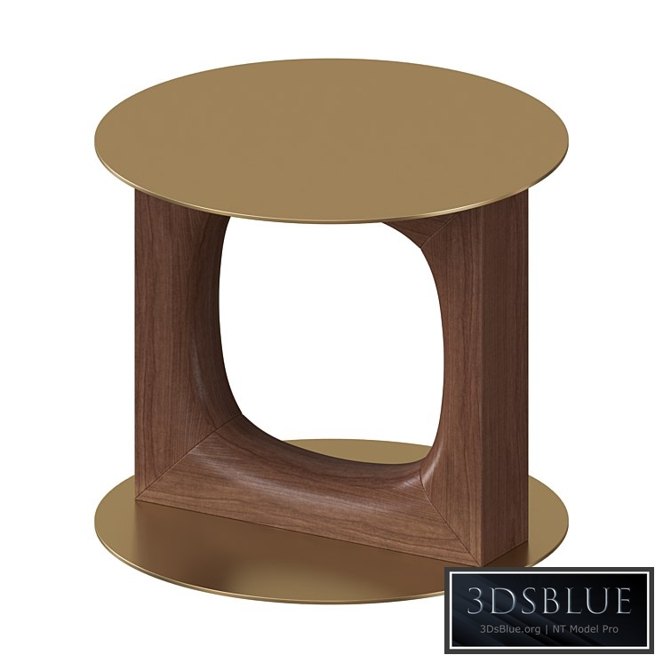 Side table with frame in solid canaletta walnut. Brushed brass metal base and top.