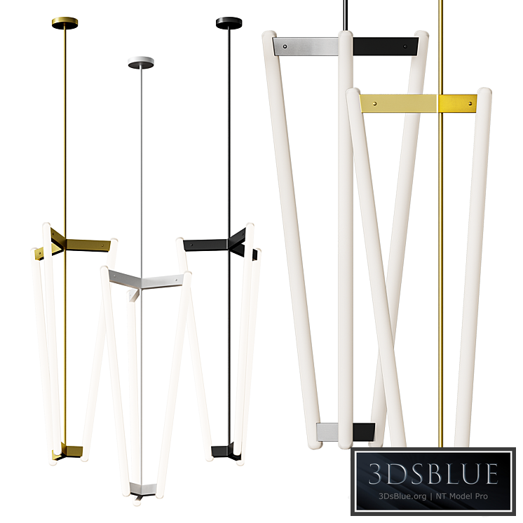 The Tube Chandelier, a triangular luminaire with lights illuminating each of three sides, is an elegant addition to any living or commercial space.