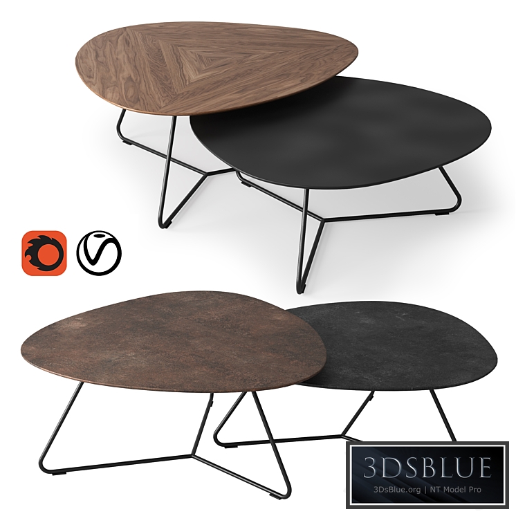 The model is presented in two color options, large and small table, respectively. In order to change the material of the model, it is enough to throw the material of one of the attached spheres over it.