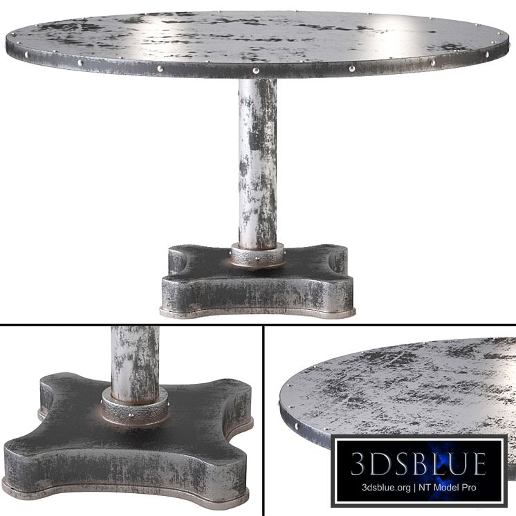 This model: Victor solid industrial metals and iron dining table Tags: dining table round iron industrial loft design vintage furniture More information on the industrial style of the model: http://www.houzz.ru/photos/37656373/viktor-industrial-solid-metal-and-cast-iron-dining-table-loft-obedennye-stoly Dimensions 140 cm D 75 * Made in 3d max 2011 Visualization in V-Ray 2.00.02 Polygons: 92238 Vertices: 54636 Model is in the scene at the origin of all objects and groups have friendly names All materials are