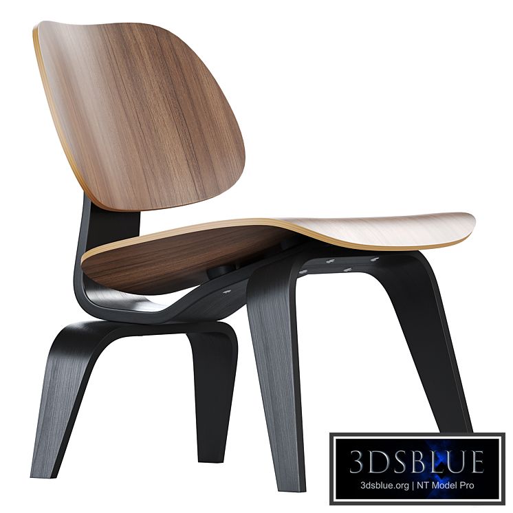 Realistic 3D model of the Lounge Chair Wood (LCW) from the Plywood group of chairs designed by Charles and Ray Eames in 1945 & manufactured by Vitra, featuring modern Scandinavian style design.