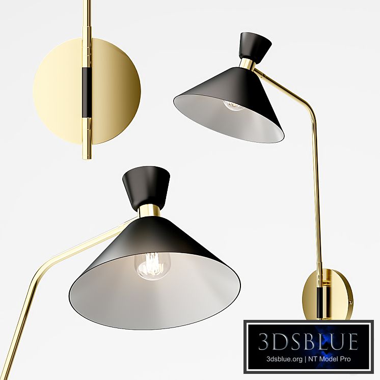 Sconce Zoticus. In the updated style of the 50s, which will add a charming touch to the interior thanks to the combination of black metal and brass. The lampshade and leg can be rotated for directional light.