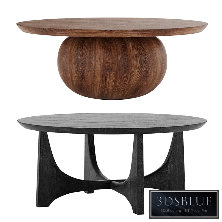 Wood coffee tables from West Elm Spherical Base Coffee Table and Tanner Solid Wood Coffee Table.