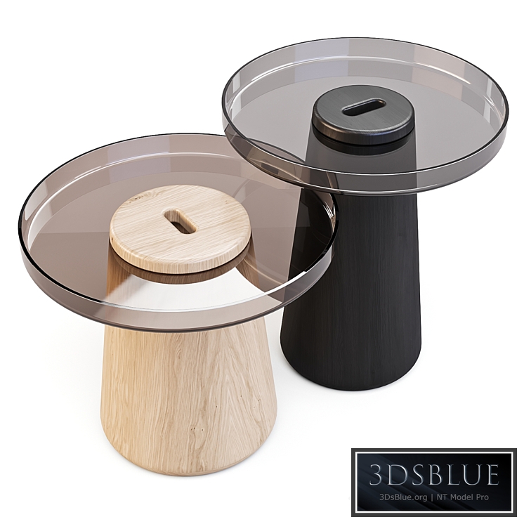 - Jean-Marie Massaud designed this set of side tables that feature a hand-carved base in solid wood and a seamlessly integrated table top made in mouth-blown glass by Poshinger, a 450-year-old glass blowing family business from Germany, which like Zanat, uses a production technique inscribed on the UNESCO world heritage list. The sculptural, round base in solid wood penetrates the bowl-shaped table top in blown glass. The hand-carved top in wood reveals a rounded rectangular opening in the middle that is not only decorative but enables one to easily grab and carry the tables. The wooden top can be easily unscrewed which enables the glass to be shipped separately and replaced in case it breaks.